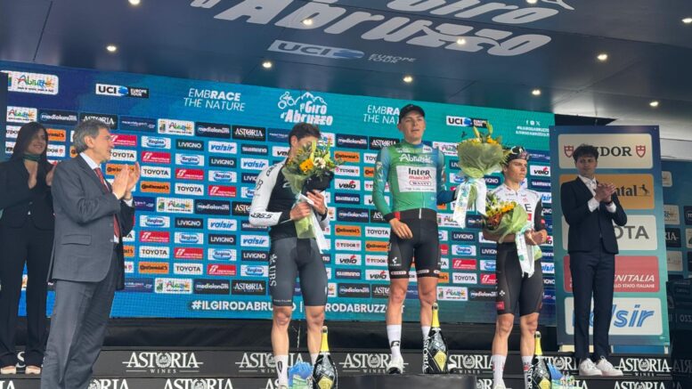 Con la vittoria del tedesco Zimmerman si è conclusa l’edizione 2025 del Giro d’Abruzzo di ciclismo maschile. L’ultima tappa, con arrivo ad Isola del Grasso, è stata conquistata dal portoghese Ivo Oliveira. A premiare i vincitori sono il presidente della regione, Marco Marsilio e l’assessore alle infrastrutture, Umberto D’Annuntiis. Il bilancio di Marsilio è ampiamente positivo: