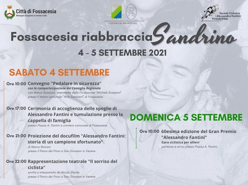 Le spoglie arriveranno a Fossacesia sabato 4 settembre, nella cappella di famiglia, dove sarà inaugurato un cippo in sua memoria. Domenica 5 la partenza della corsa dedicata alla categoria Allievi.