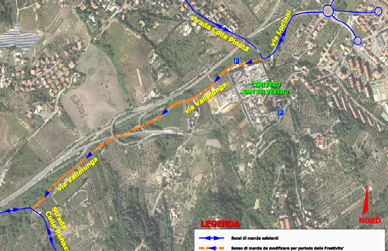 A San Silvestro viene istituito il divieto di fermata sui due lati di via Luciani e il senso unico su via Vallelunga, direzione di marcia mare-monti, nel tratto compreso tra l’ingresso del nuovo cimitero e via Colle Renazzo.