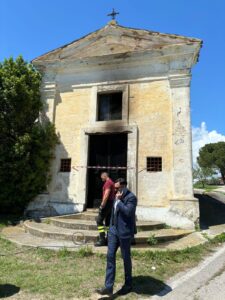 Le fiamme ieri hanno interessato il portone della chiesetta della frazione Sant’Agnese, non utilizzata ma ancora consacrata. Sul posto sono intervenuti i Vigili del Fuoco che hanno subito spento il rogo. Dai successivi accertamenti dei vigili e della Polizia municipale è emersa la presenza sul posto di un liquido infiammabile utilizzato per appiccare il fuoco.