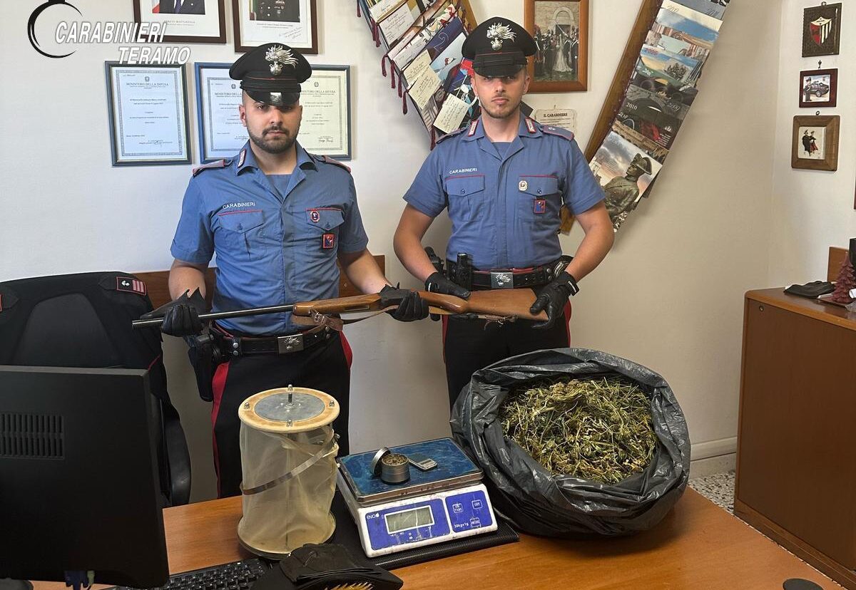 Maxi operazione antidroga in località Costa Ripe a Civitella del Tronto, condotta dei Carabinieri della Stazione di Civitella del Tronto coadiuvati in fase esecutiva dal Nucleo Forestale locale e dal 5° Nucleo Elicotteri Carabinieri di Pescara: un arresto, sequestro di droga e 30mila euro di oggetti rubati