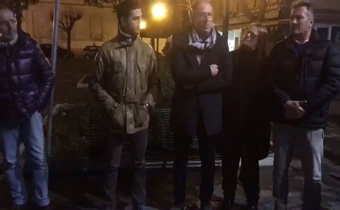 A Giulianova insegne dei negozi spente e commercianti riuniti al sit-in di protesta, organizzato dopo l’agguato al titolare di un Bar del Corso, aggredito da un rom nel suo locale.