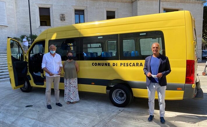 Consegnato in Comune a Pescara un nuovo scuolabus. L’Assessore Santilli: “Un mezzo moderno per la sicurezza dei bambini”.