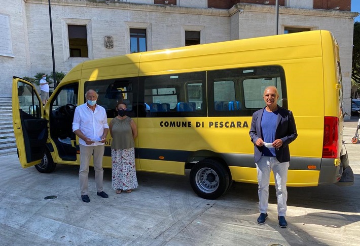 Consegnato in Comune a Pescara un nuovo scuolabus. L’Assessore Santilli: “Un mezzo moderno per la sicurezza dei bambini”.
