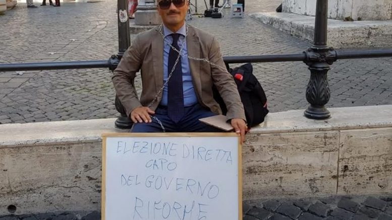 “Molto più di un gesto provocatorio” lo ha definito lui stesso in un video che sta facendo il giro dei social. Ha scelto Piazza Montecitorio l’avvocato pescarese incatenatosi ieri con tanto di cartello appeso al collo recante la scritta “elezioni diretta capo del governo. Riforme”. Immediatamente bloccato da un nucleo di poliziotti Di Monte è stato prima identificato e poi tenuto d’occhio per l’intera durata della manifestazione pacifista. Il legale del foro pescarese chiede, in sostanza, che il capo del governo anche in Italia venga finalmente eletto dal popolo sollecitando, quindi, una immediata riforma in questa direzione garantista della volontà cittadina. A chi lo ha avvicinato per capire cosa stesse sollecitando e il motivo dell’incatenamento Di Monte ha spiegato: “Io non mi muovo da qui fino a quando non sarò ascoltato. Non ho seguaci con me e sono da solo, perché questa non è una sommossa popolare, ma un’iniziativa per promuovere la legge maggioritaria e garantire la governabilità. Seguirà anche lo sciopero della fame e, se necessario, gesti ancor più plateali”.Con la nascita di una associazione di cittadini alla quale sta già dando vita, l’avvocato pescarese spera di riuscire a far passare il messaggio che” occorre combattere la prigionìa del popolo e i capricci dei parlamentari“.