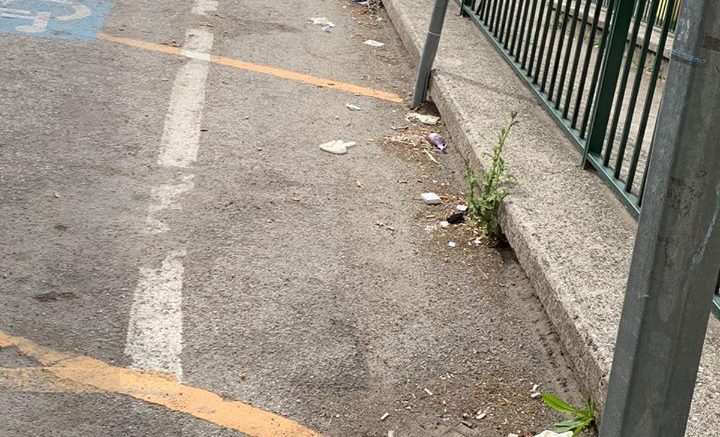 Città e frazioni sono invase da guanti e mascherine per terra: fuori dai supermercati, dalle farmacie, da Poste e banche, sui marciapiedi, rotonde, per non parlare della zona dell’ospedale San Salvatore.