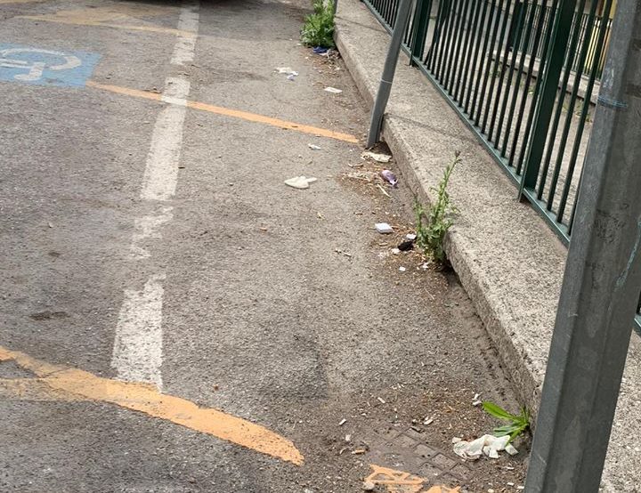 Città e frazioni sono invase da guanti e mascherine per terra: fuori dai supermercati, dalle farmacie, da Poste e banche, sui marciapiedi, rotonde, per non parlare della zona dell’ospedale San Salvatore.
