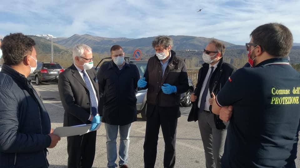 Coronavirus Abruzzo: prende forma il progetto della centrale del 118 all’Aquila, nell’area dietro l’ospedale San Salvatore. Ieri il sopralluogo del presidente Marsilio. Per il vice presidente della Giunta Imprudente l’opera per le aree interne è strategica