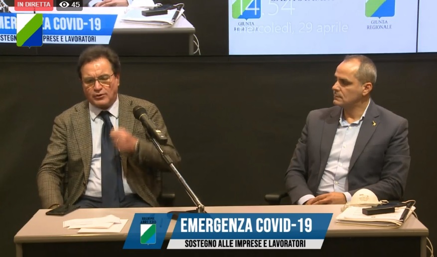 Il Governo della Regione, nell’intento di fronteggiare gli effetti negativi sul tessuto sociale e produttivo della regione causati dall’emergenza virus, sta promuovendo il confronto tra tutti i portatori di interesse, con i quali condividere le misure da porre in essere. La discussione odierna si è sviluppata sui tempi e le modalità di erogazione della cassa integrazione e sul credito e la liquidità per aziende e imprese. Poco fa è iniziato il “punto stampa” con gli assessori Febbo e Fioretti, in diretta streaming sulla pagina Facebook “Abruzzo Regione Aperta”.