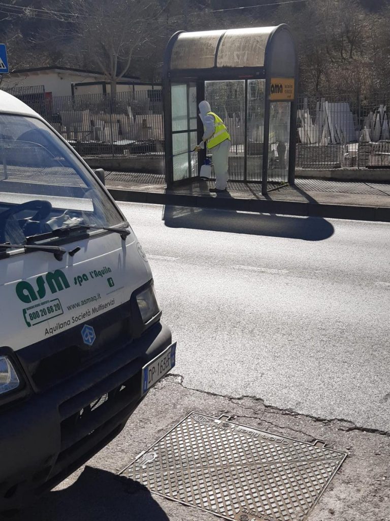 Continua la campagna di igienizzazione del Comune dell’Aquila. Una trentina i punti al centro della campagna di sanificazione, su cui gli operai dell’Asm – l’azienda municipale che si occupa della pulizia ambientale e della gestione dei rifiuti urbani _ intervengono con ipoclorito per cercare di eliminare il coronavirus. Anche se l’utilizzo del sanificante anti microbico non convince tutti, per primo il sindaco dell’Aquila, che ieri, nella sua consueta conferenza stampa in diretta Facebook, ha espresso i suoi dubbi sull’efficacia: