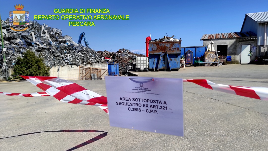Il successivo controllo, operato in data 24 marzo 2021 dalla Sezione Aerea di Pescara con il supporto della Tenenza di Nereto, Reparto del Corpo territorialmente competente, ha accertato la presenza di circa 3.500 tonnellate di materiale ferroso illecitamente gestito poiché ben oltre le quantità massima detenibile dall’azienda e, per la quasi totalità, privo di tracciabilità documentale.