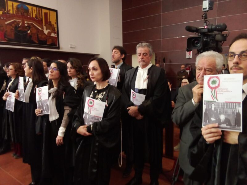 Una protesta silenziosa, quella dei magistrati, avvenuta a metà cerimonia, con l’esposizione della Costituzione per dire no alla riforma Nordio e alla separazione delle carriere. La protesta si è svolta contemporaneamente in tutta Italia, in occasione dell’inaugurazione dell’anno giudiziario delle corti d’appello. A L’Aquila la forma di protesta è stataattuata prima dell’intervento del rappresentante del ministero