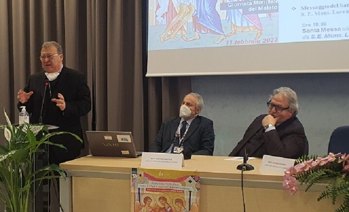Si è conclusa oggi al Mazzini la serie di incontri, organizzata dalla Asl di Teramo e dalla Diocesi di Teramo-Atri, in occasione della Giornata mondiale del malato, che quest’anno è giunta alla trentesima edizione. Stamattina nell’aula convegni del Mazzini, si è tenuta una cerimonia a cui hanno partecipato i dipendenti della Asl, con l’introduzione di Giovanni Muttillo, dirigente delle professioni sanitarie dell’Asl, e gli interventi del direttore generale della Asl, Maurizio Di Giosia e del vescovo Lorenzo Leuzzi: entrambi hanno fatto una riflessione sul messaggio di Papa Francesco per la Giornata mondiale del malato. “Dobbiamo recuperare il rapporto medico-paziente in una prospettiva di fiducia”, ha osservato il vescovo Leuzzi rivolgendosi agli operatori, “la malattia ci appartiene, non è un incidente di percorso, ma appartiene alla condizione umana. Molti invece cercano di non pensarci, perché hanno paura. Il Papa ci invita a essere misericordiosi. Ma che significa? Il paziente vive la misericordia quando vede di aver ricevuto da voi qualcosa che va al di là di quello che avrebbe dovuto ricevere. Ricordiamoci che siamo di fronte all’esperienza più difficile del nostro fratello”. “La malattia produce in chi ne è vittima solitudine, abbiamo imparato a conoscere quanto questa situazione può essere penosa e direi straziante in questi due anni di pandemia. La malattia produce anche paura: si percepisce tutta la propria fragilità, la propria vulnerabilità di fronte a un nemico sconosciuto”, ha sottolineato il direttore generale Di Giosia, ringraziando il personale della Asl “è importante che chi opera nella sanità non dimentichi l’importanza dell’ascolto del paziente. Una relazione, quella fra chi soffre e chi gli è vicino, che – mi permetto di dirlo – arricchisce entrambi. Ed è fonte continua, per chi è deputato all’assistenza, di crescita interiore”. Nel pomeriggio la messa nel Santuario della Madonna delle Grazie di Teramo. La celebrazione è stata presieduta da monsignor Leuzzi.