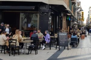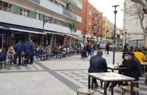 Alle 8 la gente è già seduta ai tavolini dei bar con il caffè davanti e lo smartphone in mano mentre nei dehors dei ristoranti è tutto uno smonta e rimonta e sistema, perché bisogna farsi trovare pronti per la prima cena fuori, dopo 6 mesi di chiusure.