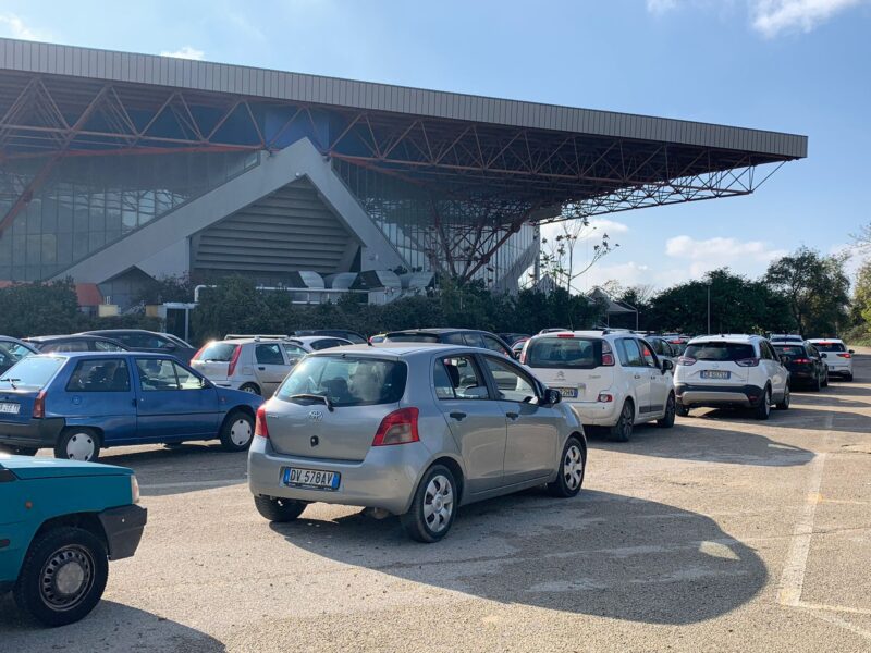 L’unica postazione attiva stamani insufficiente a soddisfare il gran numero di prenotazioni. Molti gli utenti che si sono presentati in auto privi di prenotazione. I responsabili della struttura hanno dato la precedenza a maestre e bambini. Alcuni utenti, pur provvisti della prenotazione fatta tramite la Asl per sottoporsi stamani al tampone molecolare, sono stati mandati indietro. Qualcuno è stato invitato a mettersi in fondo alla coda senza la certezza di poter sottoporsi al tampone. In fila, ad attendere per ore in automobile, anche numerosi anziani. Una situazione che ha fatto sollevare l’indignazione e le proteste di numerosi utenti giunti puntuali e con la prenotazione per sottoporsi al tampone molecolare.
