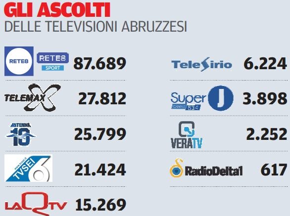 dei nuovi media, non scalfiscono gli ascolti delle televisioni abruzzesi.
