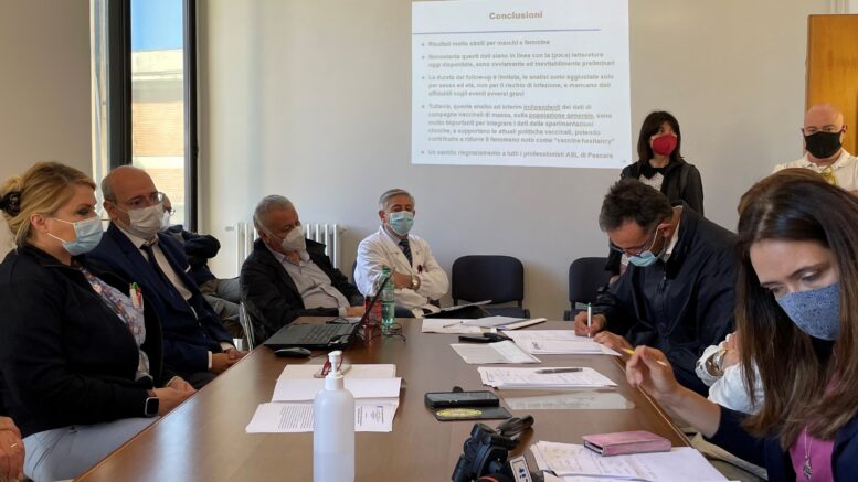 Si è tenuta questa mattina, presso Sala Riunioni della Direzione Generale della Asl di Pescara la conferenza stampa dal titolo “Efficacia vaccini anti Covid-19: lo studio dei dati della ASL di Pescara elaborati dall’Università di Ferrara”, volta alla presentazione dello studio condotto dall’Università di Ferrara sull’efficacia dei vaccini anti Covid-19 somministrati nella Asl di Pescara.