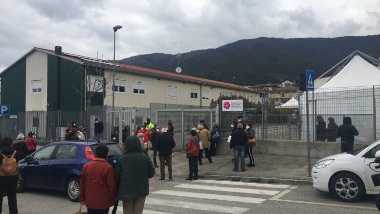 In fila da questa mattina per il vaccino anche all’Aquila nei centri di via Ficara e Bazzano le persone dai 79 anni in giù che si sono prenotate con la nuova piattaforma di Poste scegliendo hub e indicazione dell’orario. Questa settimana sarà riservata alle persone dai 79 ai 75 anni.