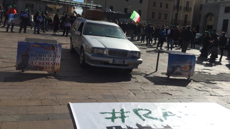Manifestazione in Piazza Duomo organizzata dall’associazione RAVV con tanto di carro funebre e una clessidra a scandire il tempo