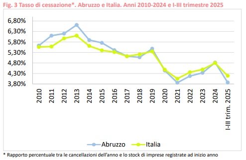 lievemente solo a L’Aquila e Pescara, unica provincia che riporta anche un tasso di cessazione