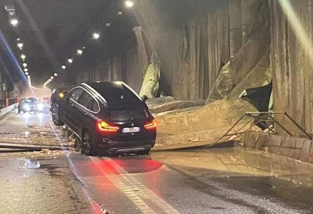 Il cedimento di una parete laterale del tunnel non ha avuto esiti tragici per puro caso, nonostante il coinvolgimento di una Bmw che ha impattato con alcuni pannelli in cemento caduti sul manto stradale e il cui conducente ha riportato solo leggere contusioni.