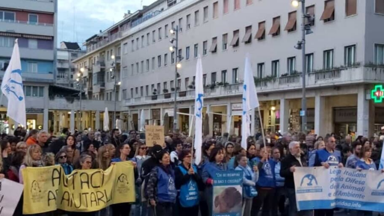Alcune centinaia di persone hanno partecipato in piazza Salotto a Pescara alla manifestazione per dire no alla chiusura del canile di via Raiale