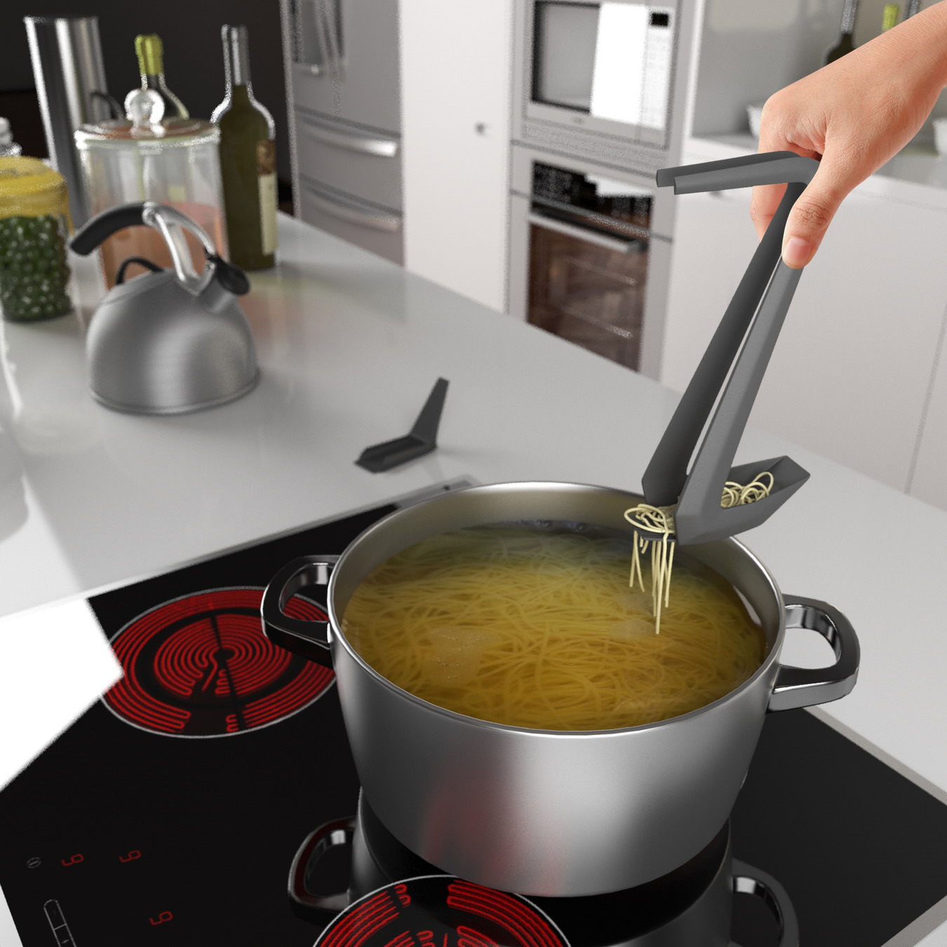 Duc(oo)k, che ricorda una paperella stilizzata, è stato concepito in materiale plastico, completamente riciclabile, resistente fino a 220 gradi e che non danneggia le pentole con rivestimento antiaderente. La base in silicone consente il comodo appoggio della pinza. Il nome fonde le due parole inglesi duck, papera, e cook, cucinare.