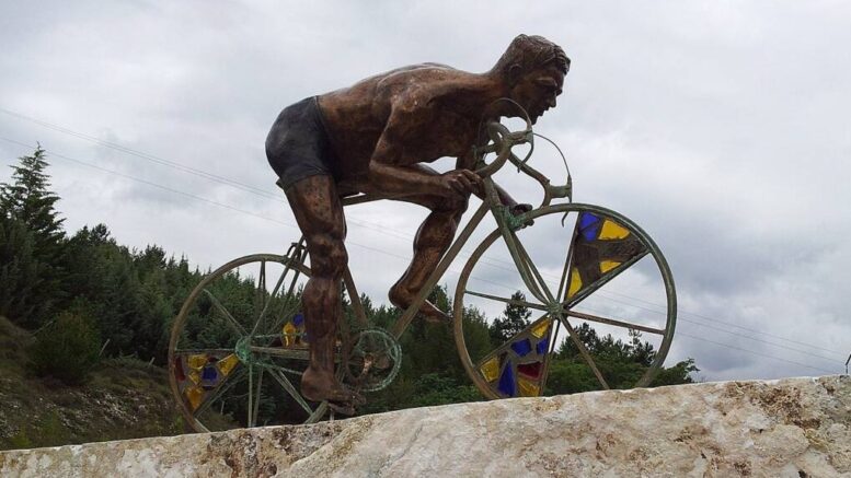 La statua commemorativa era stata istallata sul valico del Salviano alle porte del Santuario della Madonna di Pietraquaria il 18 ottobre 2012, una stata in bronzo che raffigurava il ‘Camoscio d’Abruzzo’, soprannome di Taccone, mentre era in piedi sui pedali. L’opera realizzata