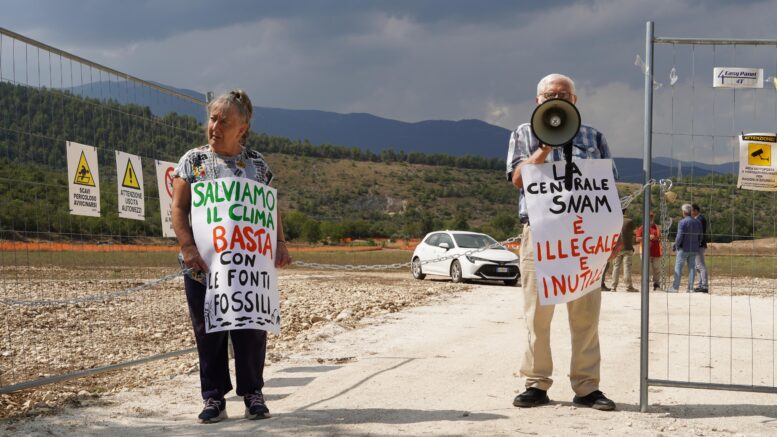 “La nostra vuole essere una azione di “obbedienza” civile nonviolenta – hanno dichiarato gli attivisti – per denunciare la folle scelta, avallata dal governo, di costruire due nuovi e dannosi impianti fossili che andranno ad aggravare il cambiamento climatico i cui effetti disastrosi, attraverso eventi meteo estremi, sono ogni giorno sempre più evidenti.” dichiarano i due attivisti. È surreale che si parli continuamente di siccità, di mare surriscaldato ecc e poi si vada avanti con opere fossili che incateneranno il paese alle fossili per decenni. La centrale e il metanodotto Linea Adriatica, da Sulmona a Minerbio, sono due infrastrutture totalmente inutili e dannose perché il consumo di metano in Italia è letteralmente crollato a 60 miliardi di metri cubi, ben 26 in meno rispetto al 2005 quando si è toccato il picco massimo. Nei prossimi anni dovrà diminuire ulteriormente. Si tratta di due impianti costosissimi – 2 miliardi e 500 milioni di euro – che servono solo ad incrementare i profitti della Snam ma che saranno pagati dai cittadini italiani attraverso la loro bolletta energetica e dalle tasse dei cittadini europei.”