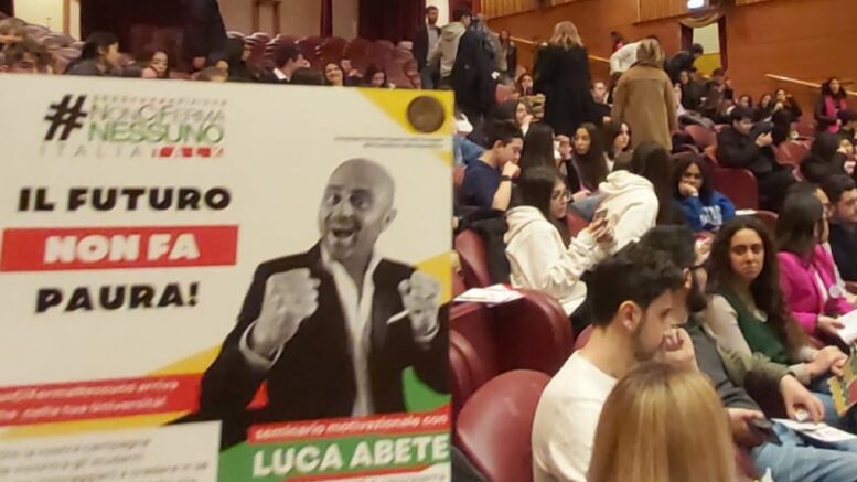 Ma se lo meritano davvero? Certamente no, non tutti almeno: a sentire la storia di Fiorenzo Foti viene da pensare che di giovani che si danno da fare ce ne siano eccome. Un esempio è lo studente premiato oggi all’Università d’Annunzio Chieti Pescara nell’ambito del #noncifermanessuno talk, l’iniziativa motivazionale ideata da Luca Abete, storico inviato di Striscia la notizia. L’evento, nato nel 2014 per valorizzare storie di resilienza e determinazione, è arrivato alla nona edizione. «Il futuro non fa paura!» è lo slogan dell’iniziativa, articolata in momenti di forte impatto emotivo e gag divertenti. Con il suo tour Abete punta a stanare le motivazioni che bloccano il coraggio dei giovani studenti.