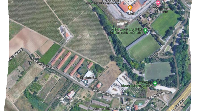 Si tratta di 8 capannoni realizzati nel 1971 adibiti in passato ad allevamento intensivo del pollo da carne della superficie coperta complessiva di circa 5.300 metri quadri. L’attività di allevamento fu dismessa nel 2004 a causa di una evidente incompatibilità ambientale creatasi a seguito della nascita a soli 100 metri di un prestigioso centro sportivo ( Poggio degli Ulivi ) e ad un mega centro commerciale ( Outlet Village ). Nel maggio 2011 dopo una una visita ispettiva del Dipartimento Prevenzione ambientale la Asl accertò lo stato di grave degrado delle coperture in eternit in quanto, dato il tempo trascorso, ( 40 anni ) si manifestava una friabilità accentuata delle lastre con pericolo di diffusione nelle aree circostanti di fibre contenenti amianto. Di seguito, nel 2012 l’Amministrazione Comunale emise una ordinanza sindacale contingibile ed urgente per la bonifica dell’area, ma la soc. Maas srl allora proprietaria degli immobili non potette aderire a tale richiesta in quanto era ferma e priva di risorse finanziarie a causa della dismissione dell’attività dovuta appunto alla incompatibilità sopra citata, pertanto l’allora Sindaco trasmise il fascicolo all’Autorità Giudiziaria che emise un decreto di condanna dell’amministratore della società. Successivamente il lotto di terreno in oggetto venne assegnato ad una socia uscente della Maas srl, ma anche quest’ultima non dispone di risorse in quanto pensionata. Alla data odierna la situazione si è ulteriormente aggravata con ulteriore ammaloramento delle coperture in amianto , oltre che diverse rotture. Si tenga presente che a soli 100 metri ( Poggio degli Ulivi ) si allenano centinaia di atleti, compresa la Pescara calcio, oltre all’Outlet Village che dista circa 250 metri, pertanto va avviata una urgente bonifica del sito che è diventato di fatto una vera e propria emergenza ambientale.