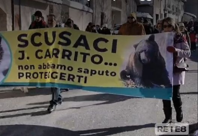 Alla testa del silenzioso corteo le fiaccole e uno striscione con due foto dell’orsetto morto, una settimana fa esatta, e la scritta “Scusaci Juan Carrito, non abbiamo saputo proteggerti”. Tanti i bimbi, tanti i visi commossi. Una fiaccolata che ha voluto essere la prima di altri eventi dedicati all’orso più famoso del web