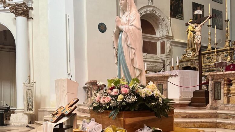 La statua della Madonna di Lourdes in “pellegrinaggio” è arrivata nella basilica di San Bernardino, da ieri, per i 120 anni dell’Unitalsi, l’associazione di volontariato che accompagna i malati nel famoso santuario
