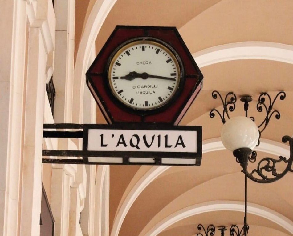 Ha scandito il passeggio sotto ai portici di generazioni e generazioni di aquilani. Lo storico orologio Omega da oggi è tornato al suo posto, in centro storico, restaurato e rimesso in funzione dal Rotary Club dell’Aquila guidato dalla dottoressa Patrizia Masciovecchio
