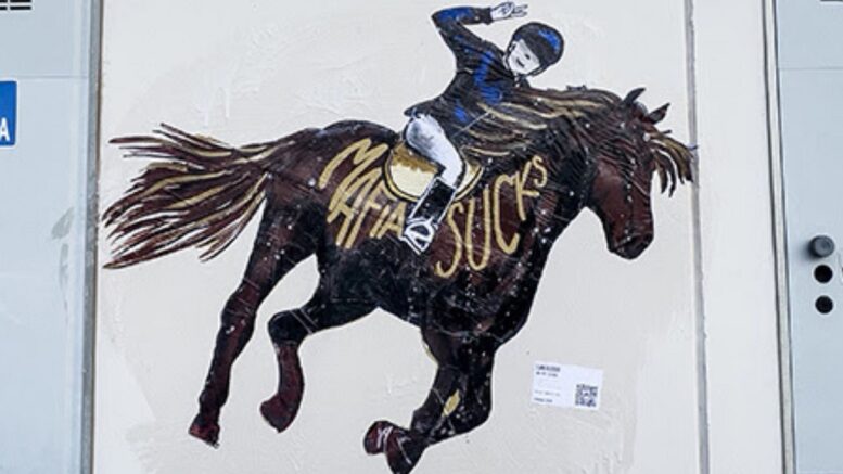 “Ho realizzato questo poster qualche giorno prima di leggere le parole di Santino, padre di Giuseppe, che dichiarava ‘la vittoria’ del figlio, perché con l’arresto di Messina Denaro tutti gli uomini di quell’efferato delitto che all’epoca sconvolse il paese intero, sono finalmente in carcere” – racconta l’artista. Il titolo dell’opera racchiude esplicitamente il suo significato. “La mafia fa schifo – afferma Laika – non credo servano molte altre parole”.