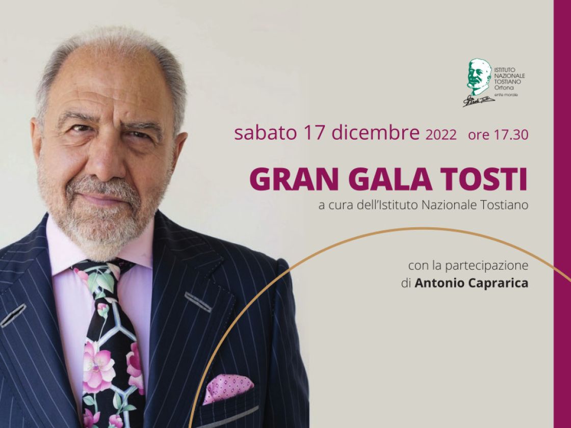 Torna anche quest’anno l’imperdibile appuntamento con il Gran Galà Tosti promosso dall’Istituto Nazionale Tostiano che si terrà al teatro Tosti sabato 17 dicembre alle ore 20.45. Per l’occasione un ospite speciale intratterrà la platea del Tosti: il giornalista Rai Antonio Caprarica