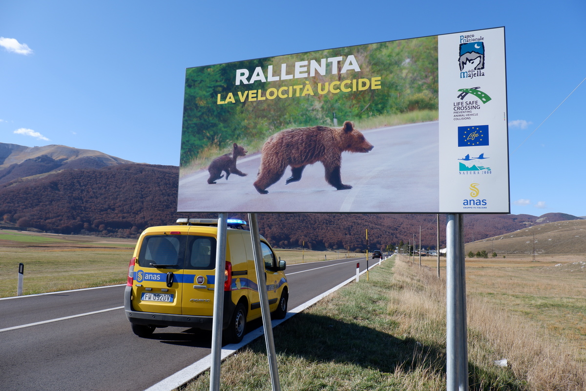 Nel Parco Nazionale della Maiella è perciò in corso un progetto dove l’innovazione tecnologica sta venendo in aiuto della biodiversità: si tratta di dispositivi innovativi, composti da sensori e termo-telecamere, o virtual fence, le recinzioni virtuali. Grazie all’azione combinata di questi dispositivi e ai 60 pannelli elaborati con la tecnica del neuromarketing, installati negli anni scorsi in tutto il territorio del Parco, il progetto ha lo scopo di ridurre sensibilmente gli impatti fra veicoli e orsi. Un progetto che oltre ad avere come specie target l’orso è importante anche per altra fauna selvatica (lupi, caprioli, cervi, cinghiali, piccoli mammiferi) e anche per la sicurezza stradale in generale.