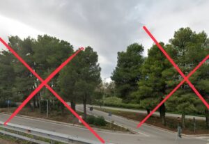 “E’ stata una foto non di qualità, fatta di corsa da chi sta passando velocemente da quelle parti e si accorge che manca qualcosa, ad annunciarmi sul cellulare, una mattina di qualche giorno fa, la mattanza di questo boschetto di circa 50 pini. Adornavano le aiuole spartitraffico del raccordo asse attrezzato – Via Raiale, uno svincolo posto nei pressi della FATER, o del tratto terminale o iniziale della “greenway” ciclabile lungo fiume sud di Pescara. Sono diversi i cartelli che indicano la pertinenza gestionale di questi tratti: ANAS S.p.A., per cui si presume sia stata questa società la “committenza” dei lavori eseguiti. Il condizionale è d’obbligo perché cartelli di cantiere non ve ne sono (normale, visto che l’intervento è terminato), ma non è dato sapere se sono stati apposti in precedenza, per informare di motivazioni, tempi, importi, autorizzazioni e quant’altro.