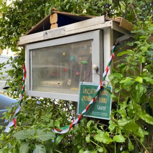 E se residenti, commercianti e passanti l’hanno vista nascere apprezzandone l’originalità, i due ideatori, Margherita Sassi e Angelo Cataldi, ne parlano con quella luce negli occhi tipica di chi dona e coinvolge. Realizzata da Fabrizio Ciccarelli, con tutto materiale riciclato, e poi infiocchettata di scritte, lucine interne per l’uso serale e altri oggetti già donati da bimbi e non solo, la Little Free Library di via Venezia è stata issata, non a caso, all’interno di un’aiuola: “Sperando che questa via possa dare più spazio al fiume di ragazzi che quotidianamente abita le scuole del quartiere e che rastrelliere e panchine possano sostituirsi alla sovrabbondanza di automobili destinata perlopiù a intasare inutilmente la strada”. Così ce la raccontano Margherita e Angelo, esattamente come ai tantissimi che ne hanno cominciato a sbirciare l’interno. E se a giudicare dal quotidiano moltiplicarsi di libri l’idea è già piaciuta eccome, Margherita ci spiega un pò meglio da dove le è nato questo desideriamo che scopriamo, infatti, essere figlia anche di un post covid che per due anni ci ha isolati, allontanati e troppo spesso privati di convivialità e condivisione.