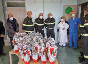 I medici e gli infermieri presenti li hanno accolti con entusiasmo, partecipando alla consegna delle uova Pasquali. La donazione è avvenuta attraverso il contributo volontario dei Vigili del Fuoco in servizio e in congedo del Comando provinciale e dei relativi distaccamenti. All’iniziativa ha partecipato anche la moglie del collega Vigile del Fuoco Giancarlo Giuliani, prematuramente scomparso lo scorso anno a seguito di un brutto male che l’ha strappato dall’affetto dei suoi famigliari e dei colleghi.