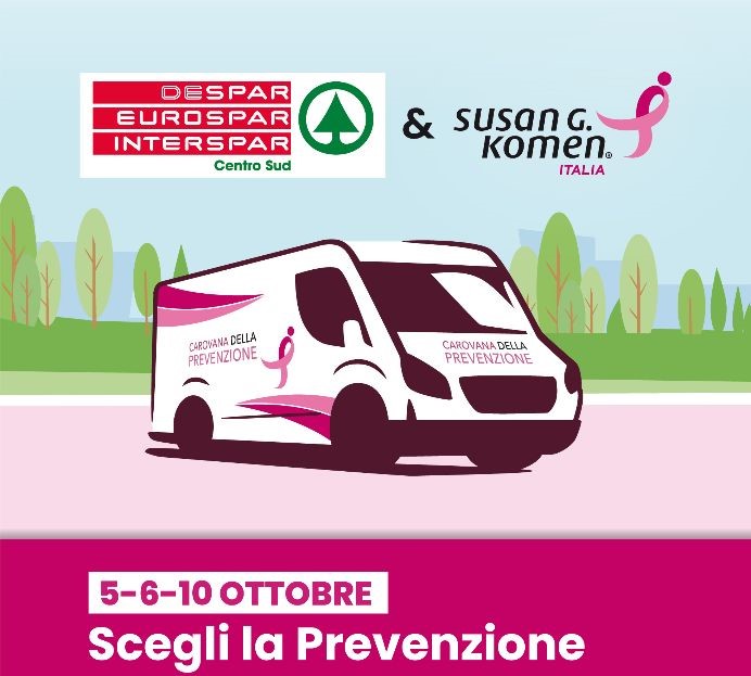 Le tappe coinvolgeranno la Puglia nelle date del 5 e del 6 ottobre e approderà in Abruzzo il 10 ottobre. ll Progetto “La Carovana della Prevenzione” è ideato congiuntamente da Komen Italia e Fondazione Policlinico A. Gemelli IRCCS e si pone il duplice obiettivo di fornire esami preventivi gratuiti, veicolando, al contempo, una forte campagna di sensibilizzazione sull’importanza di sottoporsi ad esami periodici preventivi. L’iniziativa, accessibile tramite prenotazione, si svolgerà nei parcheggi dei punti vendita cittadini della rete Despar che diventeranno anche dei veri e propri centri di informazione sulla Prevenzione e prevede la presenza di unità mobili, con strumentazioni ad alta tecnologia per eseguire esami di prevenzione senologica e ginecologica.