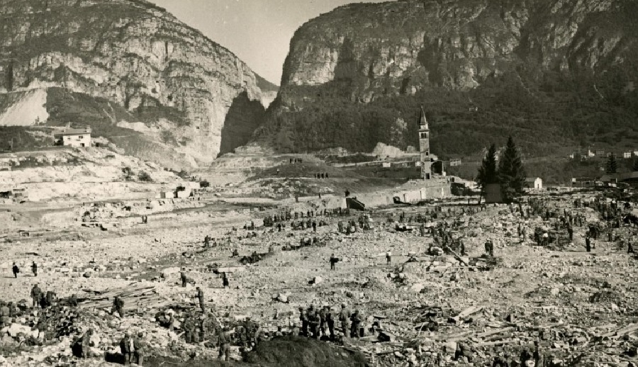Era la sera del 9 ottobre 1963, quando nel nuovo bacino idroelettrico artificiale del torrente Vajont una frana precipitò dal Monte Toc provocando un’onda di piena che distrusse tutti gli abitati lungo le sponde del lago nei comuni di Erto e Casso e la successiva inondazione distrusse i paesi a fondovalle tra cui Longarone