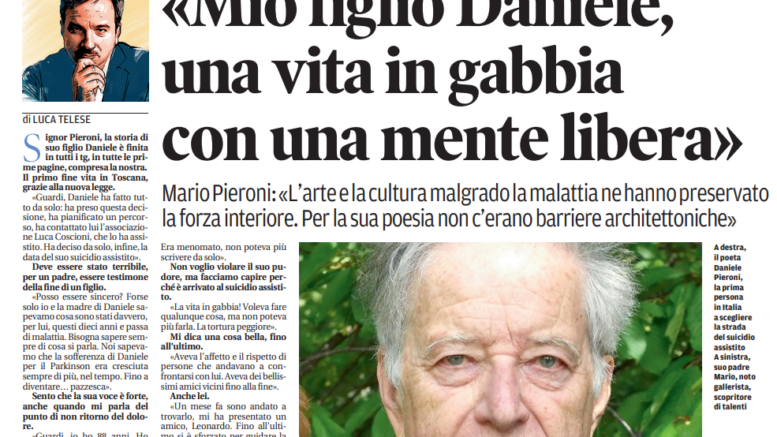 Suicidio assistito in Toscana: oggi su il Centro l’intervista rilasciata dal padre di Daniele Pieroni, Mario