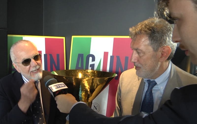 Nel video esclusivo della doppia intervista realizzata ieri a Napoli dal collega Daniele Cristofani, inviato per il Centro e Rete8, assieme a quelle del governatore Marsilio sono diventate virali le dichiarazioni del presidente della società campione d’Italia Aurelio De Laurentiis, particolarmente esplicite sul suo rapporto con giornalisti e telegiornali