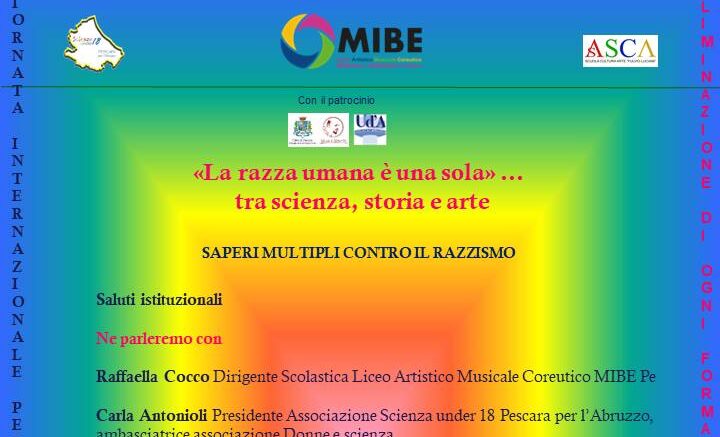 L’incontro rientra nelle iniziative della ‘Giornata internazionale per l’eliminazione della discriminazione razziale’ proclamata dall’ONU per il 21 marzo e si svolge al Liceo Artistico Musicale Coreutico MIBE di Pescara, domani dalle ore 9.30. La manifestazione è patrocinata dall’Università Gabriele D’Annunzio Chieti-Pescara e dal Comune di Pescara.