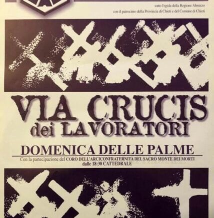 La Via Crucis dei Lavoratori tornerà ad attraversare il centro storico di Chieti, come da tradizione, al tramonto della Domenica delle Palme. È la cinquantaduesima edizione della manifestazione, organizzata dalle ACLI Provinciali di Chieti e coordinata da Mimmo D’Alessio, Dirigente Nazionale ACLI, che l’ha lanciata.