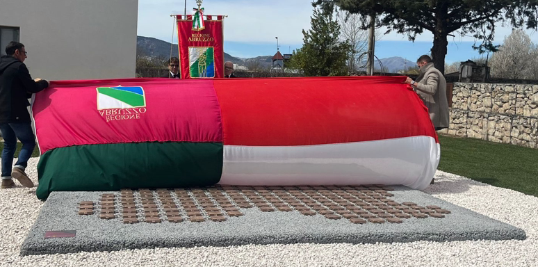 Un’installazione con 309 tessere di bronzo in dono dal Consiglio regionale dell’Abruzzo alla Comunità di Onna (L’Aquila)