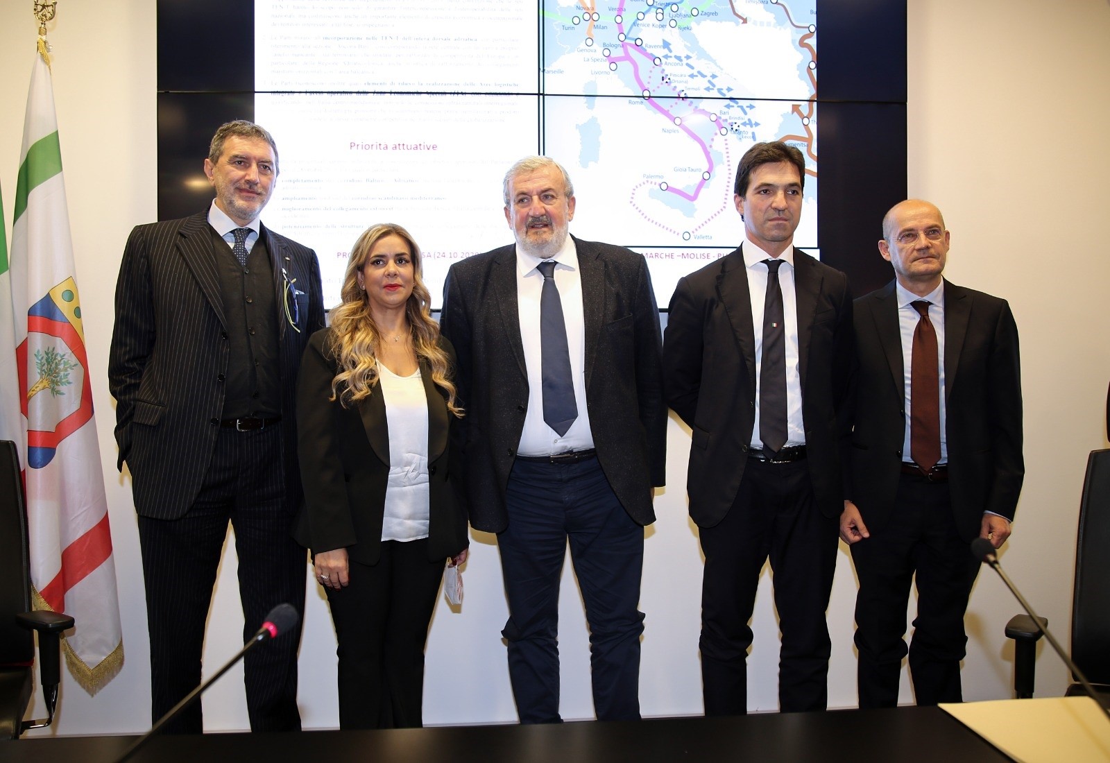 Alla conferenza stampa hanno partecipato anche i presidenti della Regione Marche Francesco Acquaroli, della Regione Puglia Michele Emiliano e l’assessore ai Trasporti del Molise, Quintino Pallante. Nell’ottobre del 2020 tra le quattro Regioni fu firmato un protocollo d’intesa per consolidare le intese in materia di trasporti e vie di comunicazione e ottenere dal governo italiano e dall’Europa il completamento del corridoio della dorsale centro meridionale Adriatica.