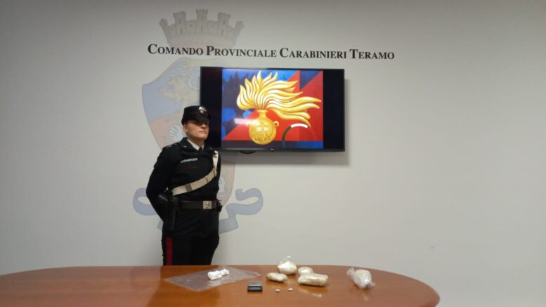A Campli i Carabinieri da giorni tenevano sotto controllo la casa dell’arrestato per spaccio: l’uomo vi abitava con la moglie (estranea ai fatti) e i figli molto piccoli. In tanti segnalavano da tempo un notevole via vai di soggetti sospettati di far uso di stupefacenti: preziose le segnalazioni da parte di alcuni genitori preoccupati che i loro figli frequentassero quell’abitazione. Durante un appostamento i carabinieri hanno visto il padrone di casa intrattenersi all’esterno con un giovane dopo avergli consegnato un piccolo involucro in cambio di soldi. Immediatamente intervenuti i Carabinieri hanno trovato i due in possesso di una dose di cocaina. Da una successiva perquisizione domiciliare nascoste in diversi luoghi dell’abitazione sono trovate altre droghe: 30gr circa di cocaina suddivisa in dosi; 6 panetti di hashish per un peso complessivo di grammi 300; grammi 15 di hashish suddiviso in dosi; grammi 30 di marijuana; materiale per il taglio e confezionamento delle sostanze. Tutto posto sotto sequestro e l’uomo arrestato.