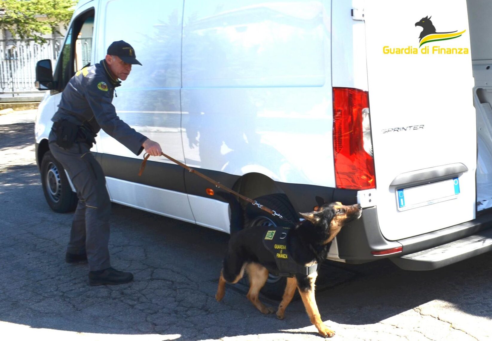 I sequestri sono stati portati a buon fine anche con l’ausilio della nuova ‘fiamma gialla a quattro zampe’: Lux, un pastore tedesco di 4 anni, appena arrivato dal Centro Allevamento e Addestramento Cinofilo della Guardia di Finanza di Castiglione del Lago (PG). Fondato a metà degli anni ‘50, è il polo addestrativo e formativo delle unità cinofile del Corpo destinate all’impiego nei settori antidroga, antivaluta, antiterrorismo e ricerca di superficie.